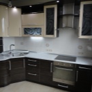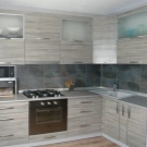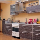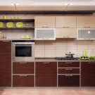 - ПДЧ (ПДЧ) Това е доста хлабав материал от икономична класа, чието качество директно зависи от състава на дървесни отпадъци и формалдехидни смоли, използвани при производството му. Неговата подобрена модификация, ламинирано ПДЧ, има защитно ламинирано покритие, което създава гладка и здрава повърхност, която предотвратява изпаряването на вредните компоненти. Стенните кухненски шкафове от ПДЧ и ПДЧ са в по-ниския ценови сегмент и са достъпни за широк кръг потребители..