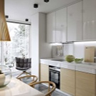 Обърнете внимание на проверката на качеството на материалите на избраните стенни шкафове, така че да не бъдат повлияни от излишната влажност и температурни колебания, характерни за всички кухни. Лъскавите повърхности на фасадите имат по -висока степен на влагоустойчивост..