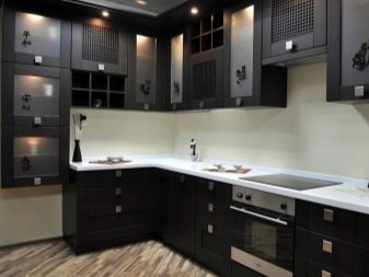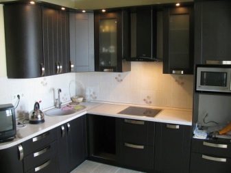 - Ъглови окачени шкафове позволяват максимално използване и рационално използване дори на най -недостъпните части от кухненския бокс. Те се предлагат в права, L-образна или трапецовидна конфигурация, имат скосени ъгли и обикновено са част от кухненски комплект. Въпреки това, такъв шкаф на стената на кухнята може да действа и като отделен независим елемент от организирането на пространството, добавяйки уют и функционалност към стаята и в същото време удобно заемайки скромно място в ъгъла.