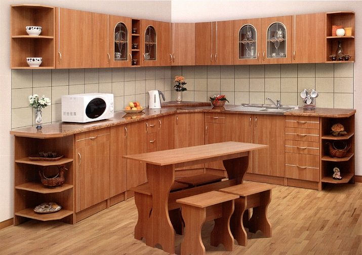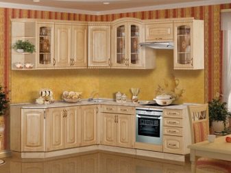 - Най -добрият материал за изработка на стенни шкафове в кухнята е дърво. – гъвкав в работата бор, антибактериален бук, грациозна череша, уютен орех, особен кестен и издръжлив дъб. Например кухненски комплект, който е популярен сред производителите и купувачите, е изработен от бор. "Анюта", освен това, освен типичните, размерите му също са нестандартни, което прави възможно рационалното използване на цялата използваема площ на кухненското пространство.