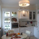 Не забравяйте, че декорът на кухненския бокс с тъмни шкафове задължително изисква допълнително осветление на стаята, за да не се загуби дори визуално нейната простор.. А белите стенни шкафове в кухнята лесно ще се съчетаят както със стандартната си компактност, така и с естествената светлина..