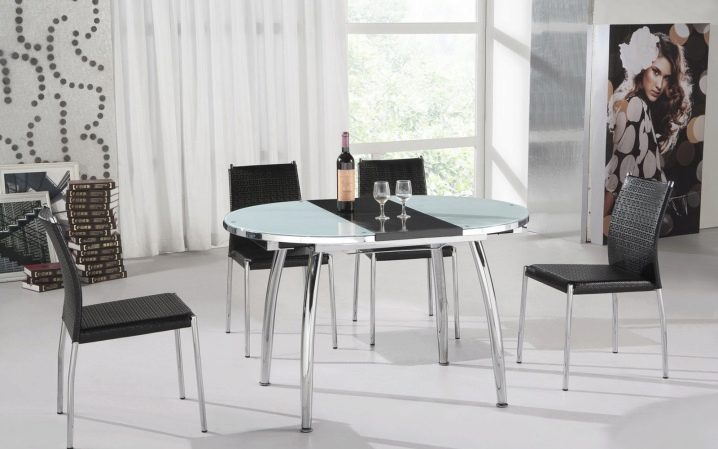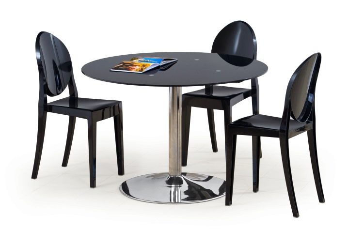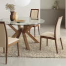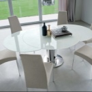 Кръгъл стъклен модел с централен крак е чудесен вариант за малка стая. Размерите трябва да съответстват на параметрите на помещението. Дори в много голяма кухня или трапезария не се препоръчва поставянето на голяма маса. Стъклената конструкция трябва да е безопасна. Това е основното изискване при избора на мебели от такъв материал..
