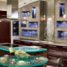Дизайнерите се съветват да обърнат внимание на прозрачния модел с двоен плот за маса. Друг интересен вариант е плотът, който има вграден прозрачен шкаф. Поставете там ваза с цветя, плодове или фигурки. За креативна и модерна кухня е подходящ плот „Направи си сам“ с LED осветление..