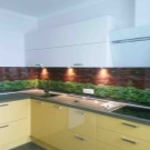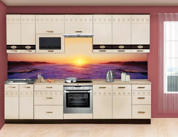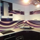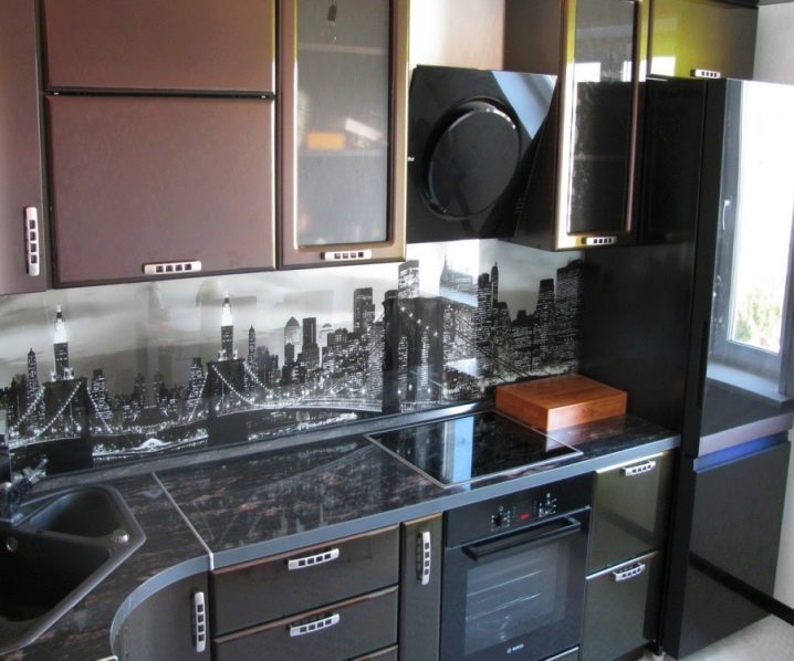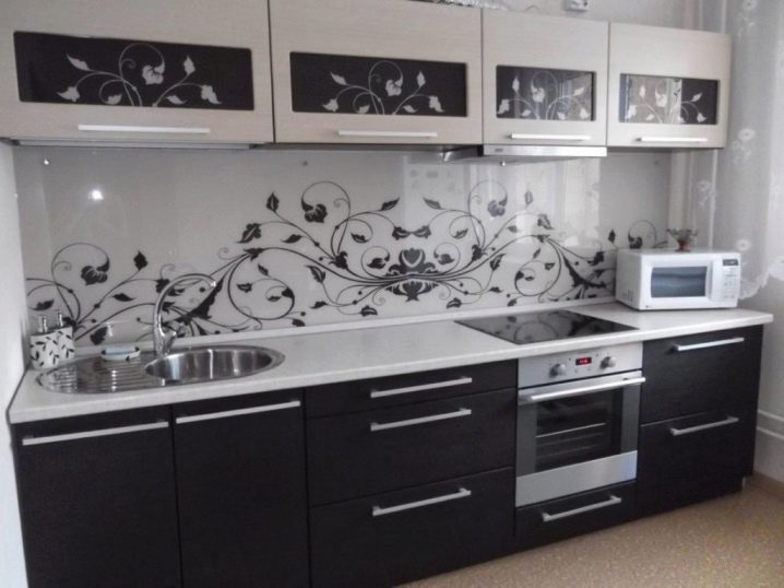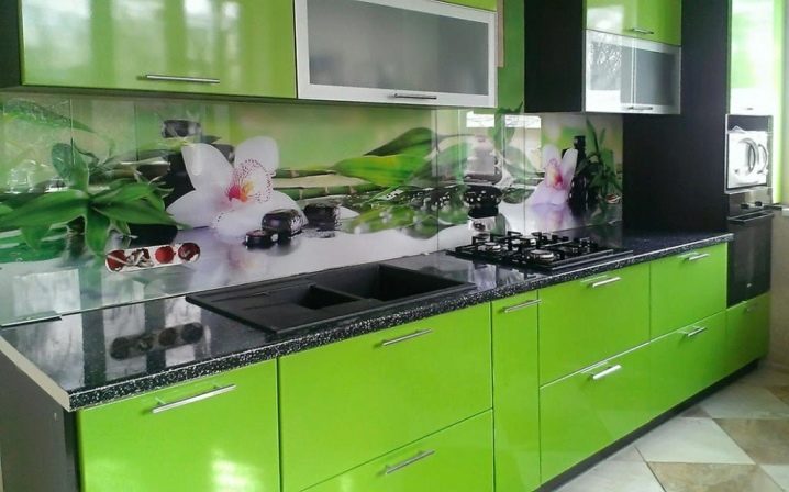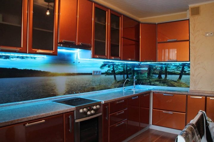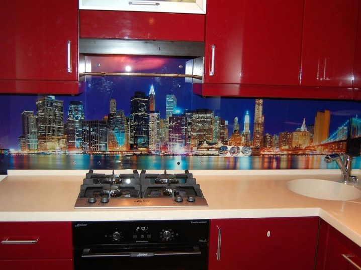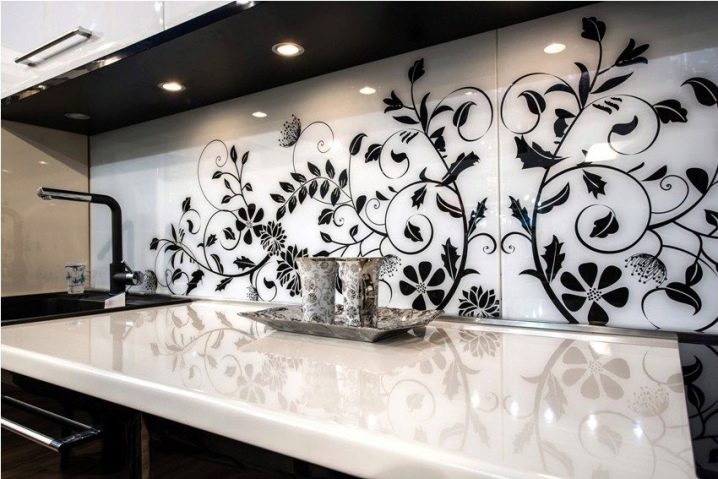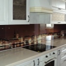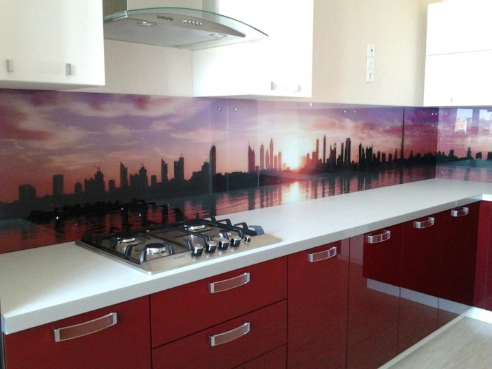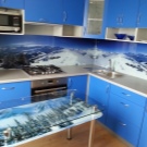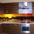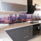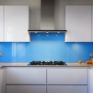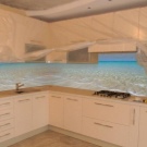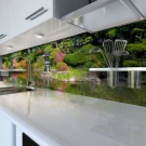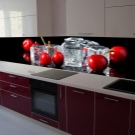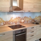 Кухненска престилка под формата на скин ви позволява да напълните кухнята с цвят и бои, като по този начин внася завършващия щрих в нейния дизайн. Стъклените скинали обикновено се изработват според индивидуалния избор на клиента, но можете да закупите и готови изображения..