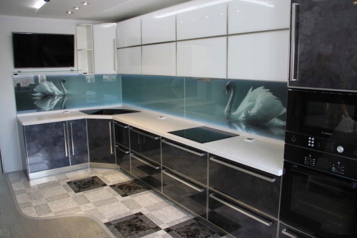 Използването на стъклен гръб прави кухнята по -модерна, в някои случаи дори уникална. Красивият цветен модел върху стъклен панел или плочка, който блести и искри с различни цветове, може да превърне кухнята в произведение на изкуството и да подобри атмосферата в нея..