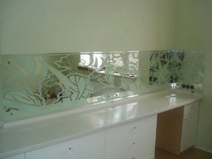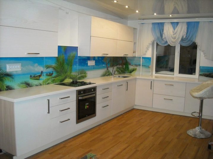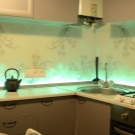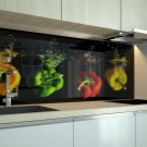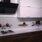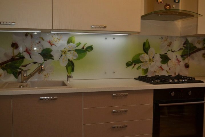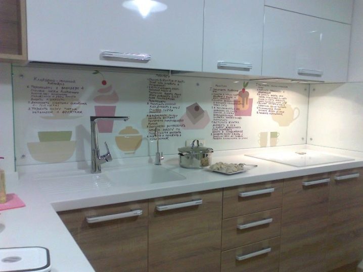 От съображения за практичност се препоръчва да се монтира отделен фрагмент от панела близо до плота или печката, тъй като, въпреки факта, че при производството на кожи се използва топлоустойчиво стъкло, някои видове бои могат да се отлепят поради температура промени (това не се отнася за използването на uf печат). В този случай фрагментарна инсталация ще позволи в бъдеще да замени сайта, който е станал неизползваем, без да се засягат цялата престилка..