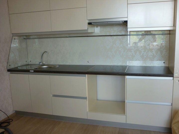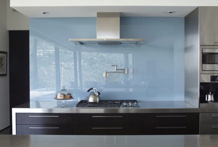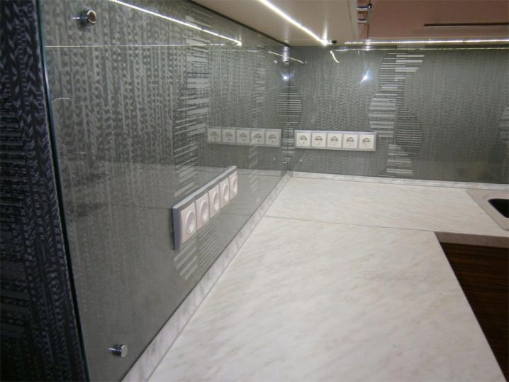 Монтажът на готовия стъклен панел трябва да се извърши върху равна и гладка повърхност на стената, така че стъклото да не се напука. Възможно е да се фиксира кожата върху тапета или дори върху плочките, ако лежи плоска. В случай, че е инсталиран един панел, собственикът на кухнята ще бъде напълно способен сам да свърши тази работа..