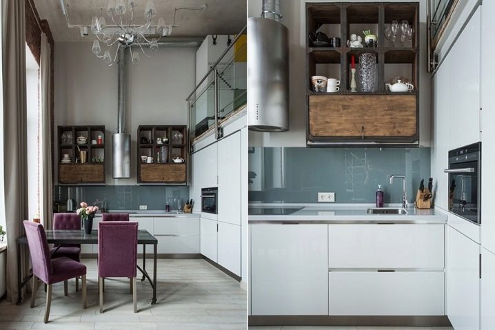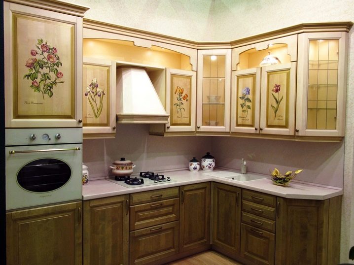 Общият стил на кухнята може да изисква използването на плътен цвят или дори прозрачна стъклена обвивка. Това се случва, когато кухненският комплект е наситен с ярки и забележими детайли, например, направени в стила на “барок” или “рокай”.