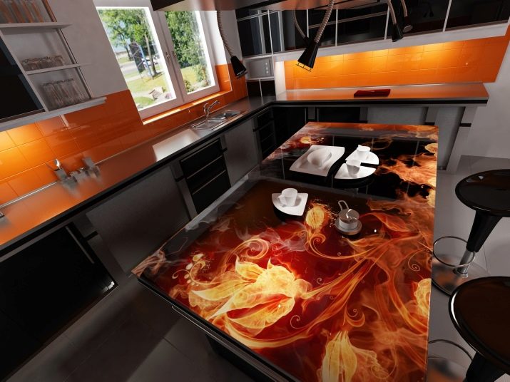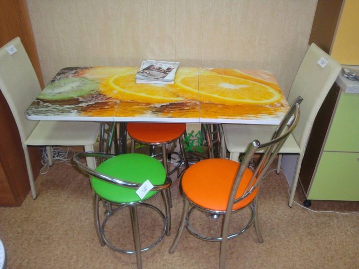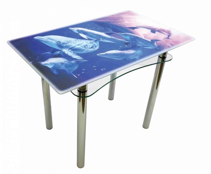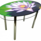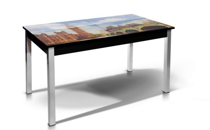 Най -голям брой положителни “отзиви” под формата на отзиви на клиенти се събират от кухненски маси с фотопечат. Те вече имат своя собствена атмосфера, успешна украса на общия антураж. Плъзгащите се дизайни с тематичен модел, шарки, орнаменти заслужават внимание. Трансформируемите модели могат едновременно да наподобяват масичка за кафе и маса за хранене.