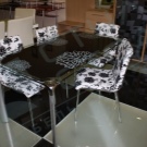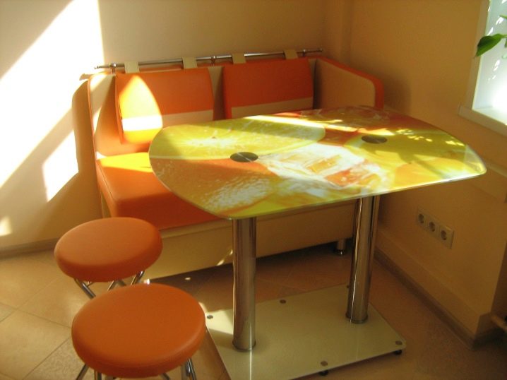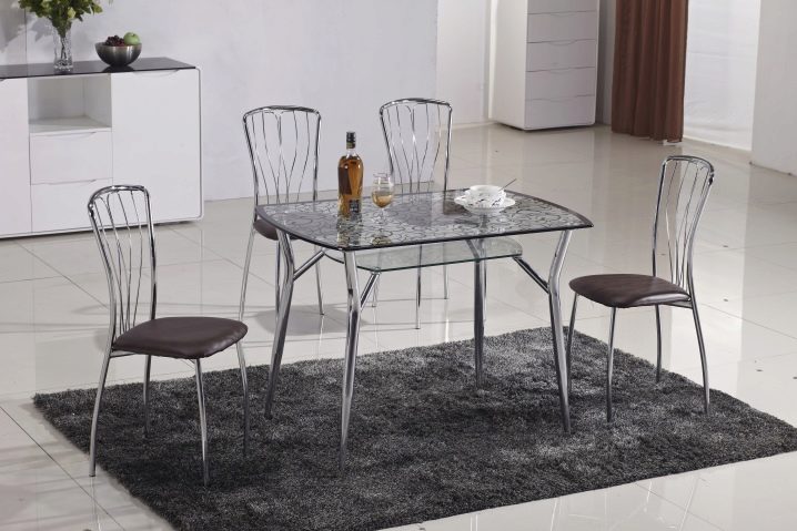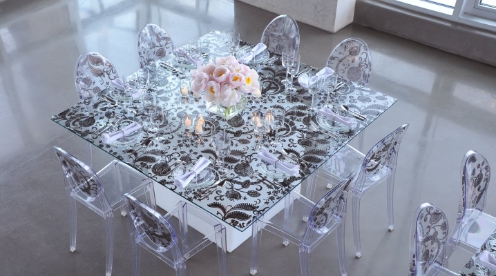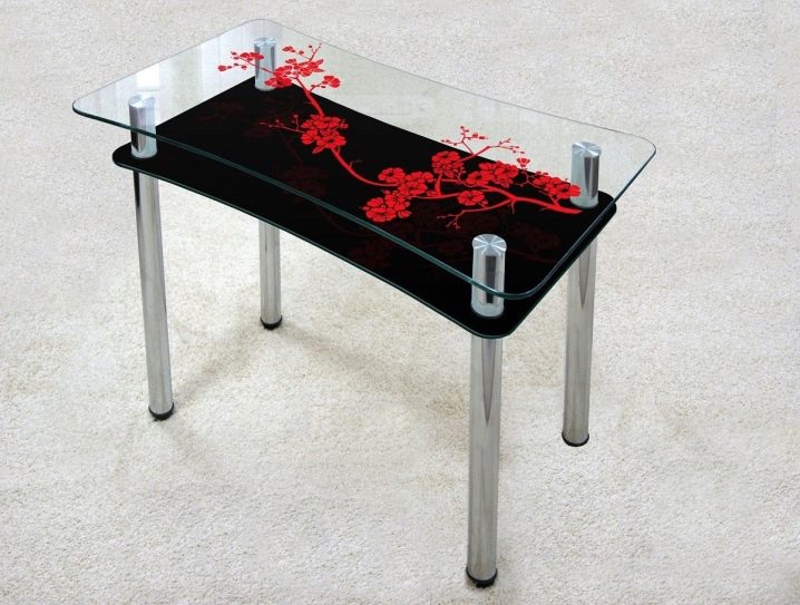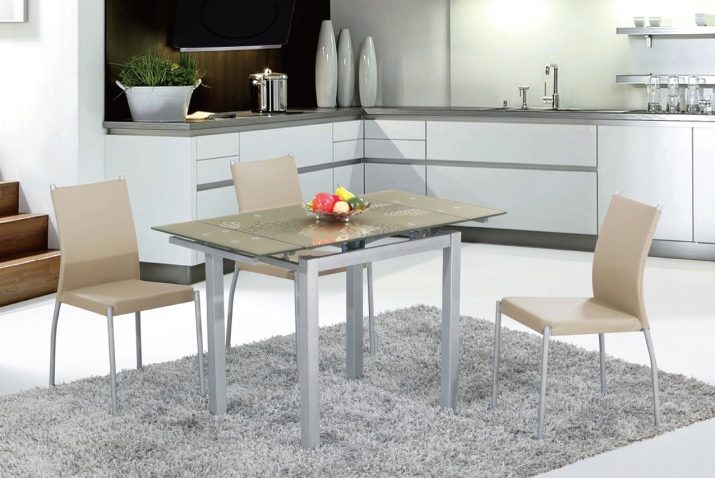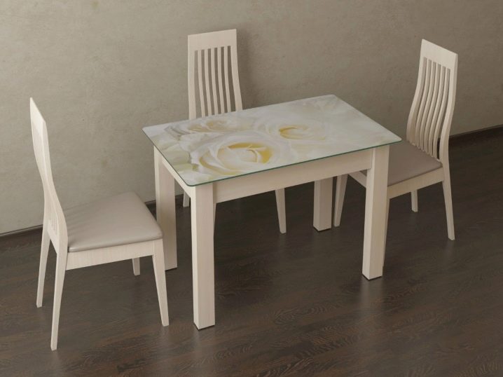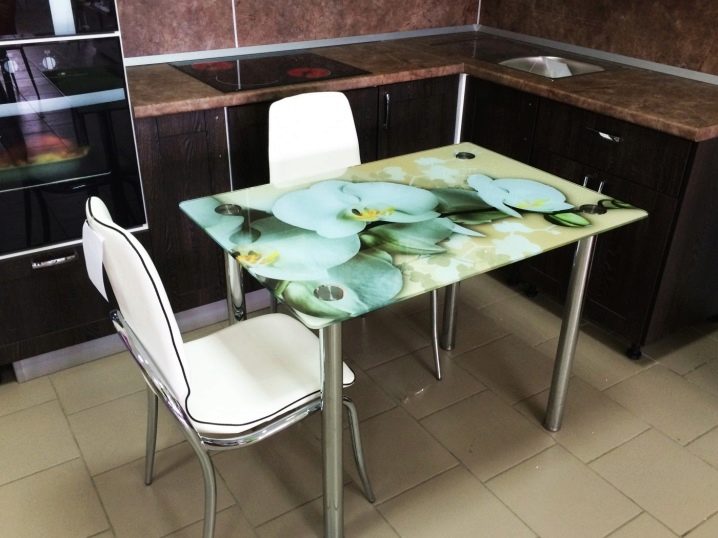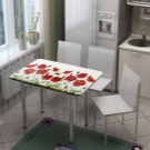 В сравнение с традиционните дървени маси за хранене, стъкленият модел визуално „разтоварва“ пространството, изглежда безтегловност и елегантен. Напоследък стъклените маси с фотопечат за кухнята набират популярност. Те са в състояние да настроят желаната атмосфера в къщата, да зададат настроение за интериора. За производството на такива конструкции се използват специални технологии. Самият материал е закален, устойчив на удари, подходящ за опасна зона като кухнята.