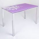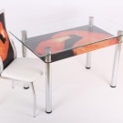 Можете да проявите творчество с дизайна на стъклена маса за хранене, ако се съсредоточите върху дизайна на продукта в интериора. Отпечатването на снимки може да се извърши като световна карта, ботанически стил с имена и снимки на растения. Отпечатването на снимки под формата на икономическа игра, поле с покер чипове, шахматна дъска, „Поле на чудесата“ няма да бъде скучно..