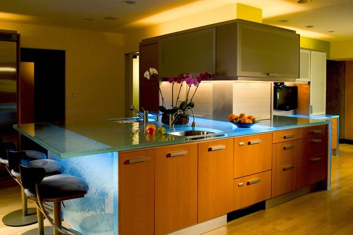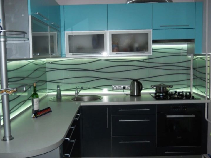 Стъклото е прекрасен материал, който ще придаде специален, интересен вид на вашата кухня. Важно е също така, че стъклената фасада е практична, гъвкава, изглежда страхотно, тъй като може да има многоцветен декор.