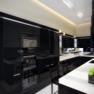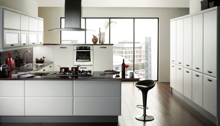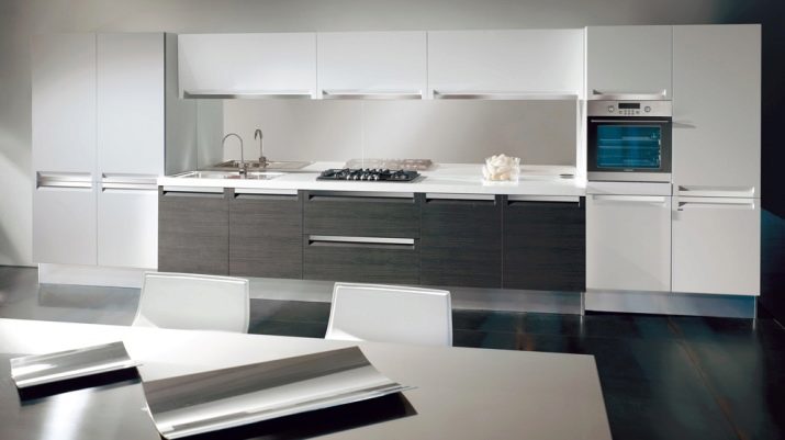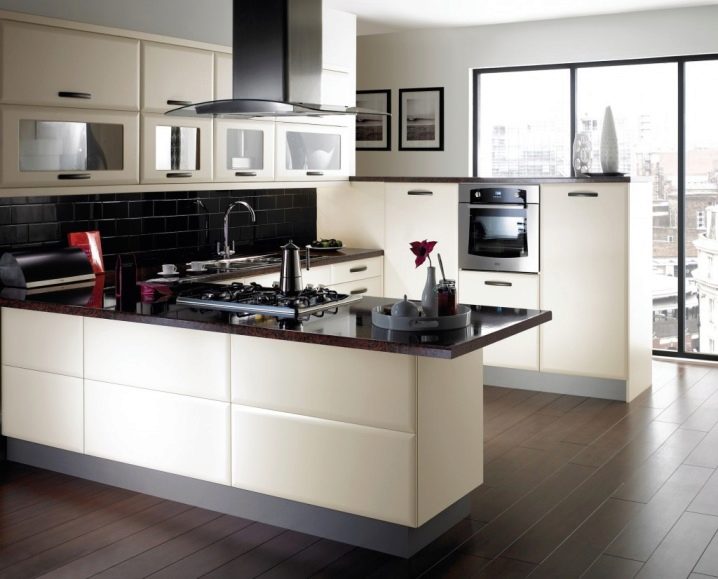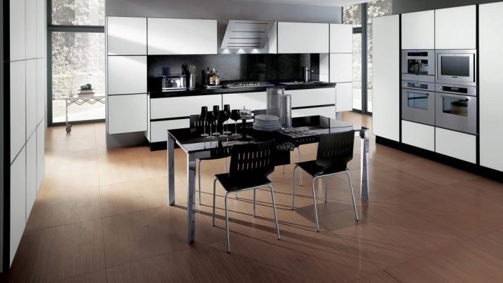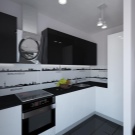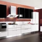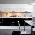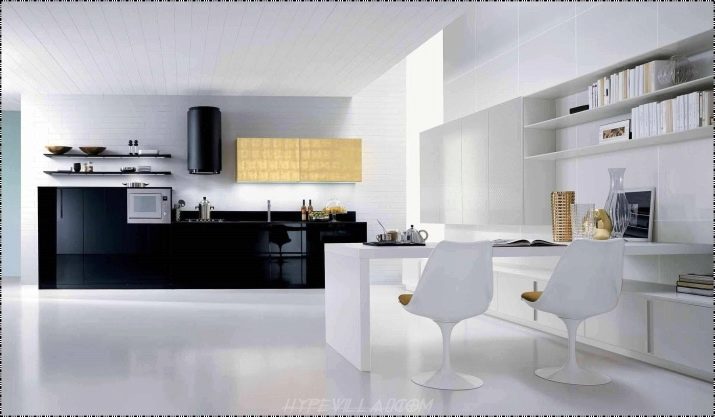 Можете да използвате всякакви цветове, за да създадете оригинален и необичаен дизайн. Но те трябва да бъдат само като подробности. Черно и бяло доминират. Ако се даде приоритет на бялото, кухнята ще бъде светла и просторна. Това е идеално за малка кухня. Ако искате да направите доминиращия цвят черен, но кадрите не позволяват, изберете черни лъскави повърхности и добавете повече осветление.