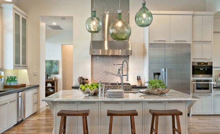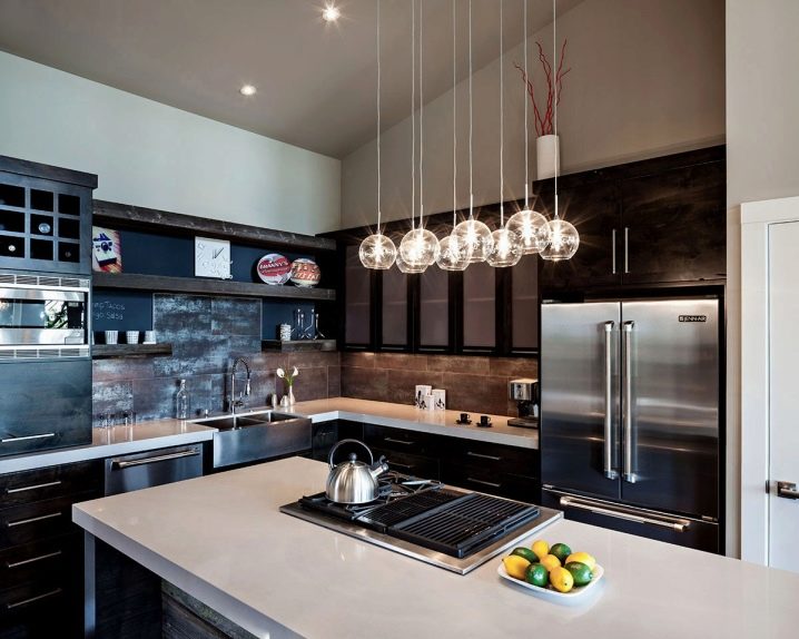 - Не можете да си купите лампи, преди да вземете решение за кухненски комплект. Първо трябва да съставите кухненски проект, да определите къде и каква светлина е необходима, да опънете проводниците и едва след това да закупите осветителни устройства.
