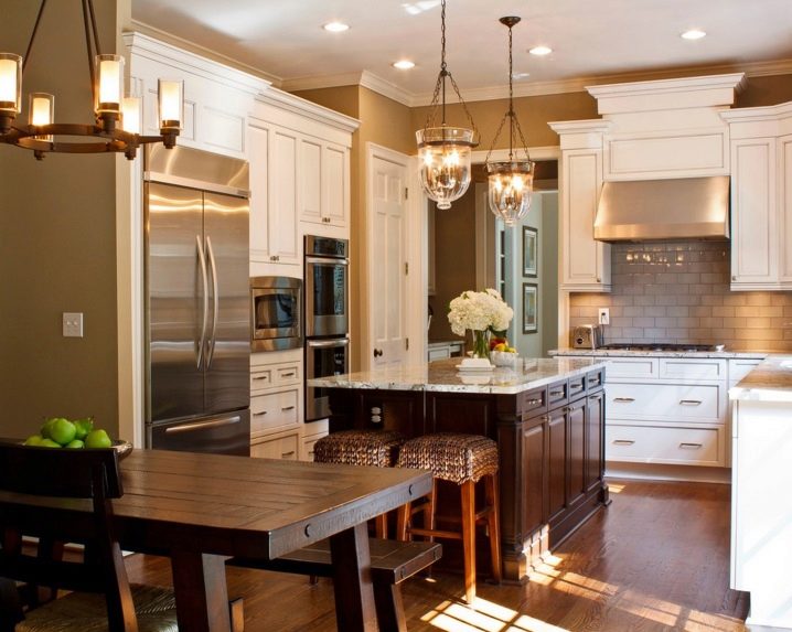 Ако кухнята има кът за хранене, осветлението също трябва да бъде добре обмислено..