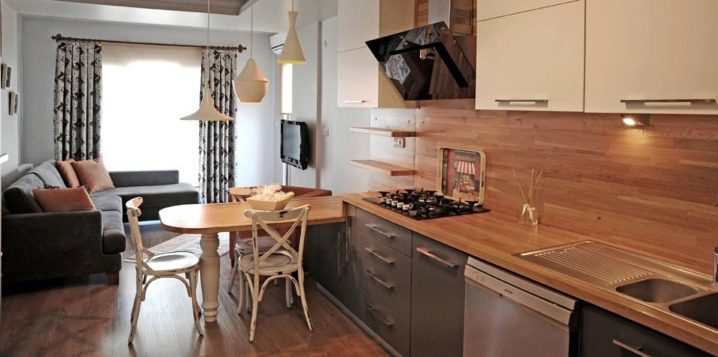 Надземните лампи, от друга страна, са подходящи за малка кухня. Те няма да заемат място и ако изберете овална или правоъгълна форма, те ще я раздвижат.