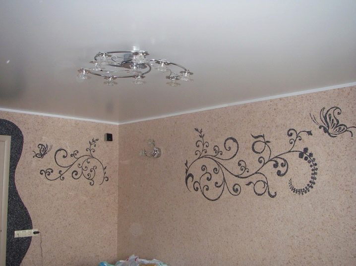 - Течни тапети могат да се нанасят върху стени и тавани. Този материал дава идеално гладка повърхност без никакви шевове. Такова съвършенство е недостижимо с обикновените тапети..