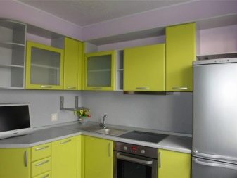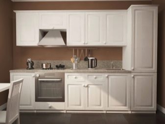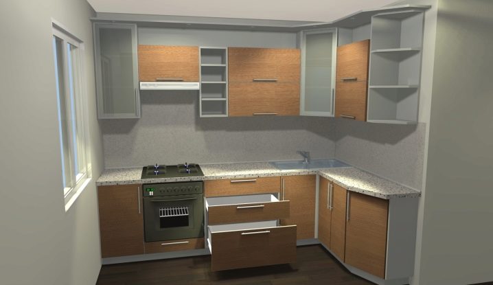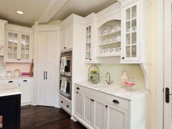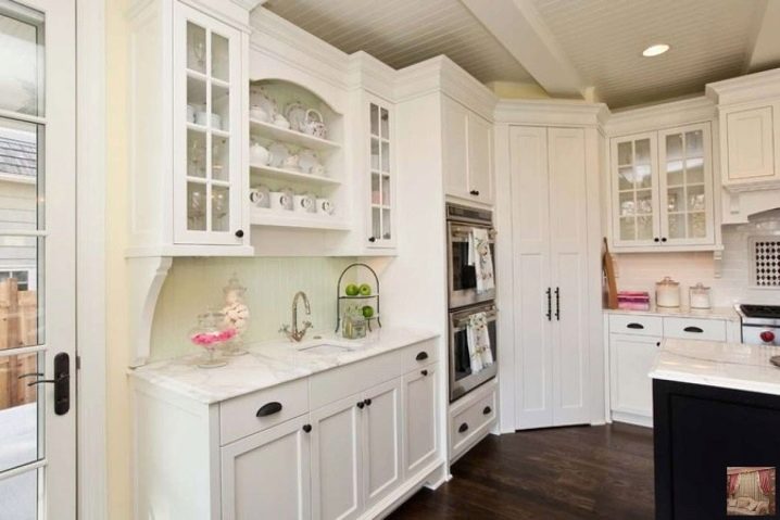 Вид на такива кухненски шкафове е крайният шкаф. Често е оборудван със стъклена врата. Друг изглед е шкаф с отворен край. Такива мебели са отлично допълнение към основния кухненски комплект. Необичайната форма придава на интериора завършен вид.