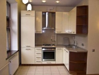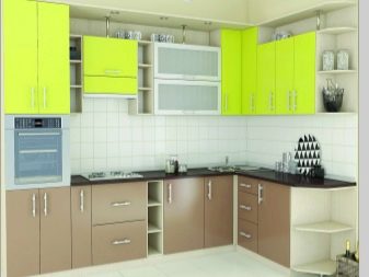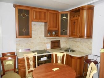 Вид на такива кухненски шкафове е крайният шкаф. Често е оборудван със стъклена врата. Друг изглед е шкаф с отворен край. Такива мебели са отлично допълнение към основния кухненски комплект. Необичайната форма придава на интериора завършен вид.