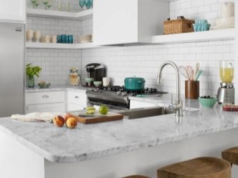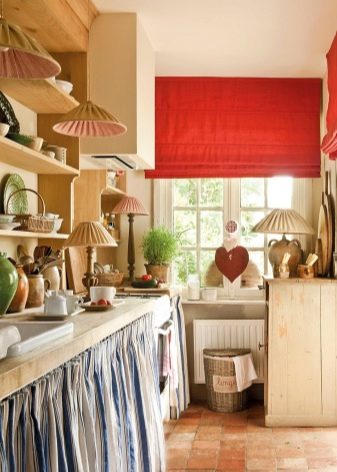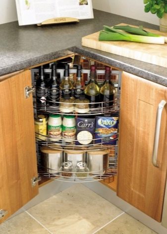 В слушалки с горни шкафове, тесен рафт, инсталиран под тях, изглежда подходящ. На него е удобно да съхранявате подправки, чай, кафе..