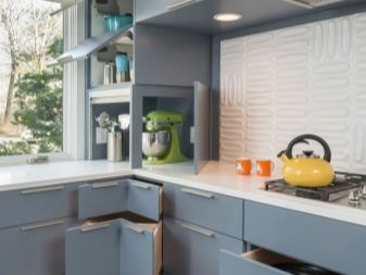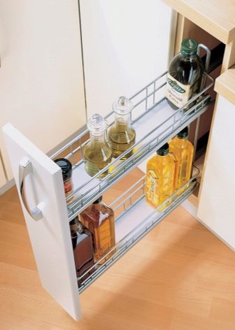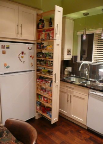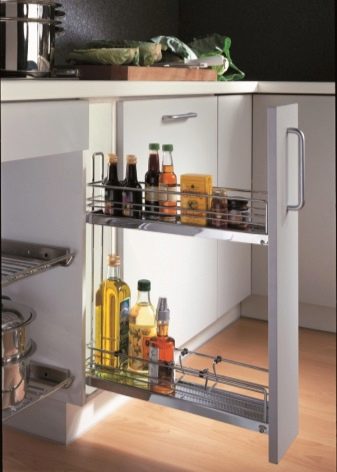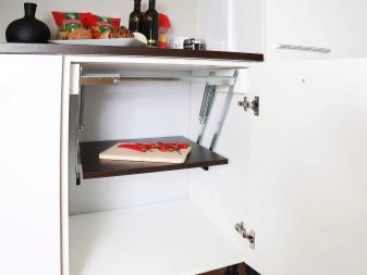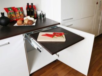 Оригинално и практично решение е използването на различни разтегателни мебели-чекмеджета, моливи или изваждащи се дъски за рязане в плотове на шкафове.