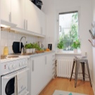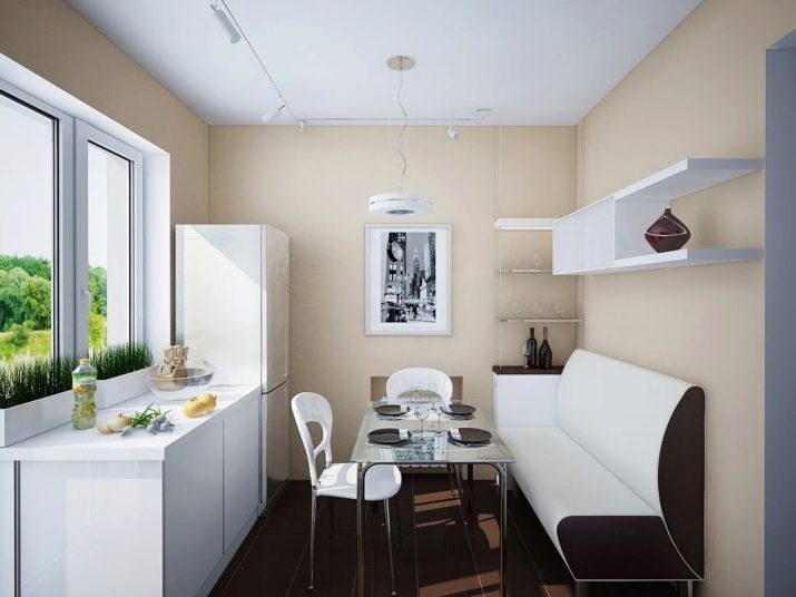 За малките кухни е за предпочитане да изберете мебели в светли цветове – бяло, кремаво, лимоново, светло розово. Заедно с правилното осветление, това визуално ще увеличи леко пространството..