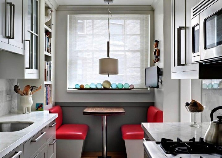 Идеята да се постави диван в тясна дълга кухня изглежда необичайна..