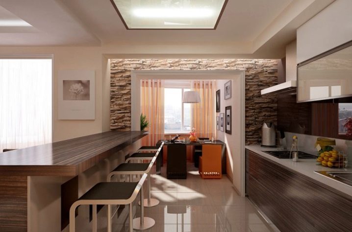Един от начините е да премахнете стената или да я преместите. В този случай получавате кухня, която ще бъде комбинирана с хол. Дизайнерският подход към такива помещения е задължителното му разделяне на зони. Дизайнът на такава стая трябва да бъде в същия стил. Зоните могат да бъдат декорирани в различни цветове, но тези цветове трябва да се комбинират помежду си..