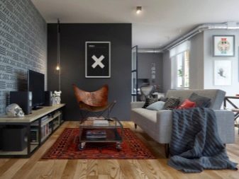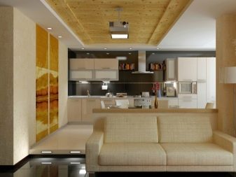 Декорът на зоната за отдих трябва да съответства на общия стил. Диван с гръб към “кухнята” и фотьойли трябва да бъде избран с широки правоъгълни седалки, ниски облегалки и обикновена тапицерия. Цветът на облицовката не трябва да контрастира с цялостната цветова схема.