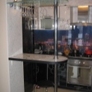 Много проста, евтина и стилна опция, която може да бъде реализирана в различни идеи и е популярна не само при собствениците на малки кухни. Плотът за маса може да бъде избран за всеки вкус и дори у дома е лесно да се фиксира към всяка стена. Също така много красиво разнообразие от бар плот е място за хранене в ниша на перваза на прозореца..