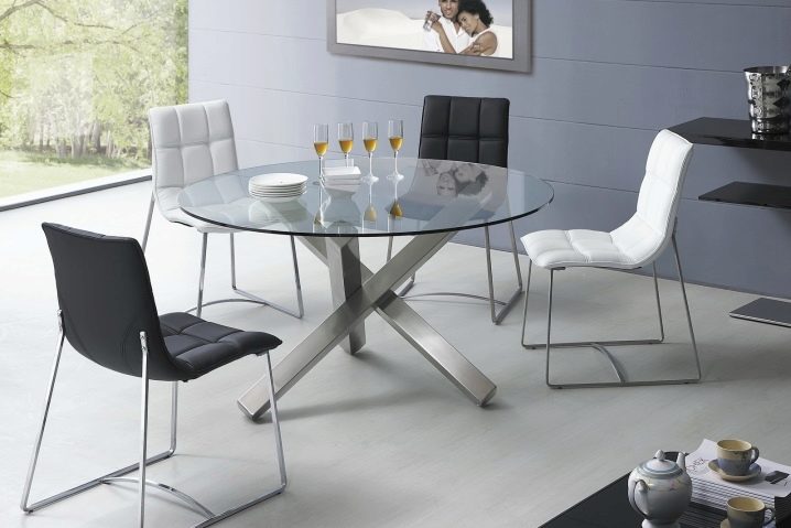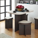 Приличната маса трябва да има придружители, които да съвпадат. Най -често те са включени в групата, но в отделни случаи се избират отделно. Разбира се, те трябва да са в хармония със стила на масата и да са леки. Ако кухненската площ е малка или средна, тогава е по -добре да изберете табуретки. Когато размерът позволява, тогава елегантните столове ще бъдат стилно решение, което от своя страна може да бъде декорирано или използвано самостоятелно. Столовете могат да имат меки, полумеки и твърди седалки. Зависи от стила и личните предпочитания..