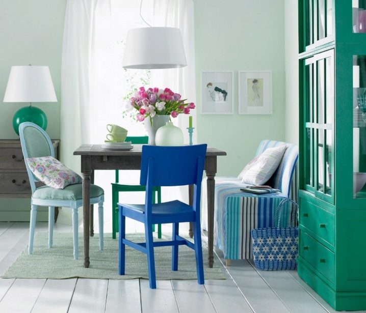 Понякога групите за хранене са представени в различни цветове – маса в един цвят и столове в различен цвят. Основното е удобството и естетическият външен вид, които ще внесат хармония във вашия дом. Съвременната мебелна индустрия предлага голямо разнообразие от вариации, така че понякога, когато избирате, очите ви дори тичат нагоре..
