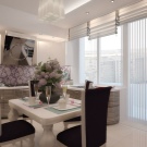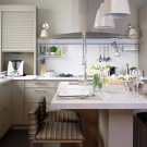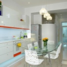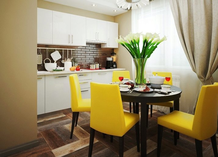 Прозрачните групи ще изглеждат интересни в малка кухня. "Невидим" масата и столовете визуално ще разширят пространството и ще изглеждат оригинални. Стилно решение би било да изберете кухненски завеси, които да съответстват на цвета на масата и столовете. При създаването на интериор за малка кухня дизайнерите съветват да се използват светли нюанси и цветове. Смята се, че светлите цветове са в състояние да разширят пространството, докато ярките и контрастни цветове "откраднат" неговия.