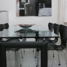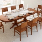 Голямата кухня е чудесно място за въображение и чудесно място за вкусни семейни обяди и вечери. Такава кухня, ако желаете, може да се превърне в шедьовър, където маса и столове ще играят важна роля. Маса с всякаква форма ще изглежда перфектно в просторна кухня. Плъзгащите се конструкции, които могат да се използват в няколко конфигурации, ще ви бъдат полезни. За голямо семейство с деца правоъгълната маса със заоблени ъгли е перфектна, позволява ви да поберете голям брой хора и няма опасност за децата.