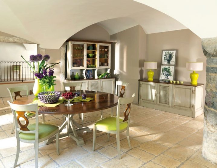 Неподражаем Прованс ще внесе специална атмосфера във вашата кухня. Модерен селски вкус, съчетан с френски романтизъм, ще ви даде уют и лекота. Спокойно жълто, виолетово, лавандулово и други цветни цветове ще ви бъдат полезни. Различни материали са подходящи за група за хранене в Прованс, най -популярни са дърво или спокойни монохроматични материали, които приличат на пластмаса. Прованс е много душевен и радостен стил, който целият свят заема от Франция..