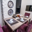 Малка кухня не означава, че минимализмът трябва да царува във всичко в интериора. Просто, практически сбито във всяка кухня, масата прилича на полуовал или полукръг, който по правило е прикрепен към стената. Такива модели спестяват място и изглеждат страхотно в интериора. Понякога кухненският ъгъл замества така наречената бар маса. Ако все още нямате деца, обичате да приемате гости, защо тогава не?