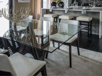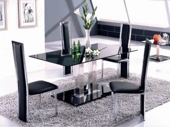 Стилните ансамбли за хранене се подчиняват на една -единствена концепция в една или друга посока в изкуството на мебелния дизайн, те могат да бъдат изработени от материали с полимерно или метализирано покритие, да имат стъклени или хромирани детайли.