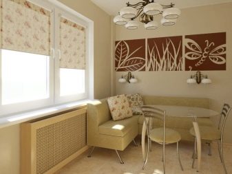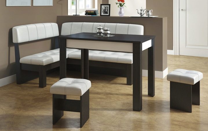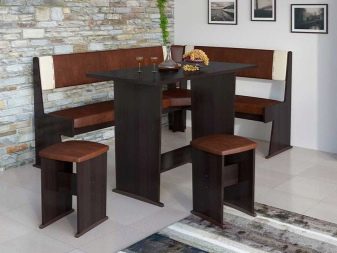 Ъгловите дивани заеха солидна позиция в кухненския интериор. Често използвани като допълнително място за съхранение, те често имат кутии за съхранение под седалката. Диваните от групите за хранене могат да бъдат сгънати в легло с помощта на странични стени или трансформиращ механизъм. В малките кухни такова използване на дивани е трудно, така че тук можете да инсталирате кухненски ъгъл, направен по същия начин като масата и табуретките.