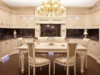 Мебелите, изработени в класически стил, са изработени от масивно естествено дърво или фурнир от фино дърво, лакирано или полирано. Столове или дивани са тапицирани с текстил в успокояващи цветове. Такива групи добавят солидност и специален лукс към интериора на кухнята или трапезарията..