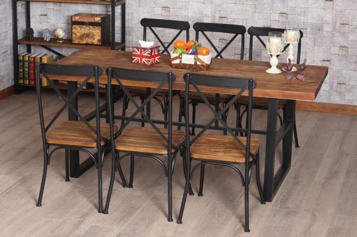 Дървените части работят добре с други материали. Стъкленият плот на дървени опори придава лекота и блясък на трапезарията. Кованите елементи ще изглеждат добре със стъклен плот. Стъклото може да има метална рамка за допълнителна здравина и да се монтира върху метална рамка.
