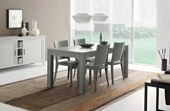 Грей е на върха на мебелната мода днес. Не нарушава баланса на визуалното възприятие. Почти всеки завършващ цвят може да се комбинира с него. Като вземете за основа сива маса и столове, можете да ги допълвате с декор в различни ярки цветове или да промените нюансите според настроението си. Класика е комбинацията от монохромен сив метален блясък на мебелни конструкции и стъклен плот с бледо кожена тапицерия на столове и дивани.
