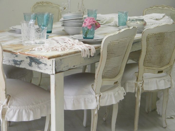 Уютни, леки и необичайни групи мебели, изработени в стил shabby chic, ще отговарят на мечтаните и премерени лица. Те се характеризират с елементи на умишлено стареене, светли и наивни цветове, волани, волани и драперии с флорален принт..