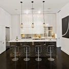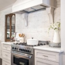 Например, бяла клинкерна тухла подчертава повърхности както от хром, така и от стъкло, като е широко използван детайл в дизайна в съвременните високотехнологични кухни..