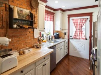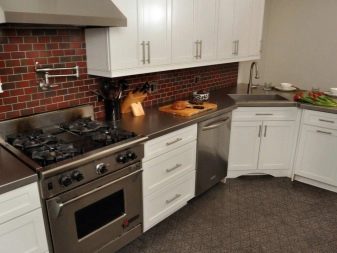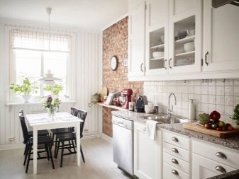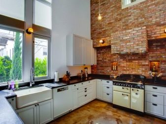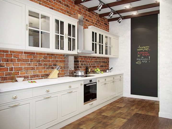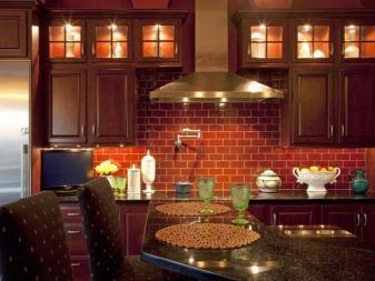 Вярно е, че съвременните специалисти са намерили изход от ситуацията, тухлената повърхност е успешно обработена със специален безцветен лак, но такова решение не винаги оправдава инвестицията. Понякога е по -целесъобразно тухлената зидария да бъде заменена с облицовъчни плочки, които имитират тухлена зидария, но издържат много по -добре на агресивните фактори на влиянието на кухнята, освен това е лесна за почистване..