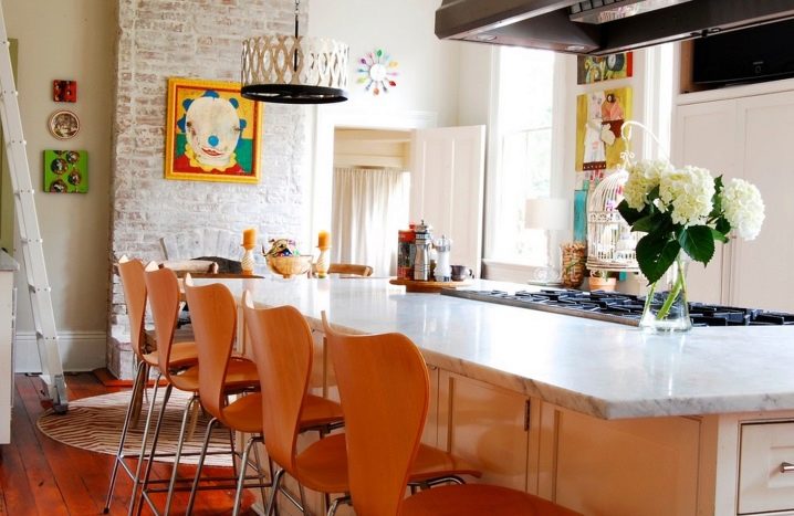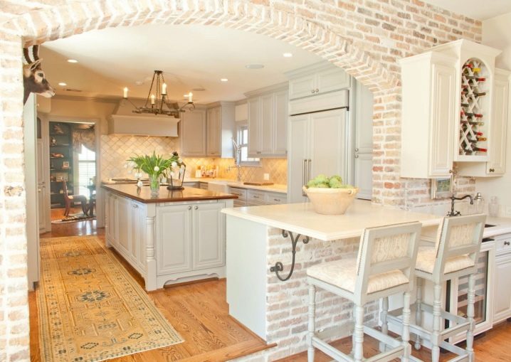 Благодарение на наличието на тухлени блокове, стаята става уютна, домашна и хората, пристигащи в кухнята, се отпускат, чувстват се по -комфортно, защитени.