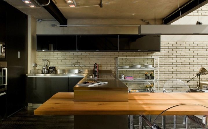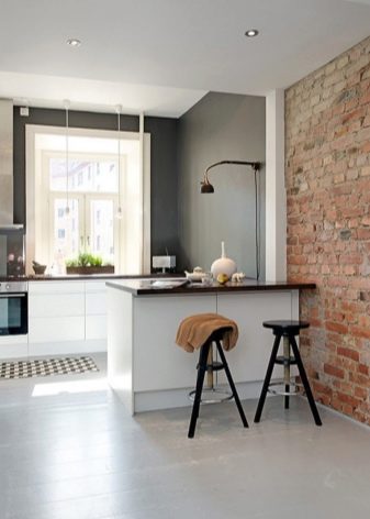 Основното правило, изразено от специалисти дизайнери, е следното: когато декорирате интериора на кухня с тухлена стена, не можете да организирате престилка на работната повърхност със същия материал. Причината е съвсем проста – ниската хигроскопичност на това покритие и грапавата му повърхност, които затрудняват поддръжката..