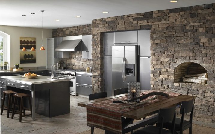 За да създадете стенен или тухлен декор в кухненски интериор, се открояват следните опции: