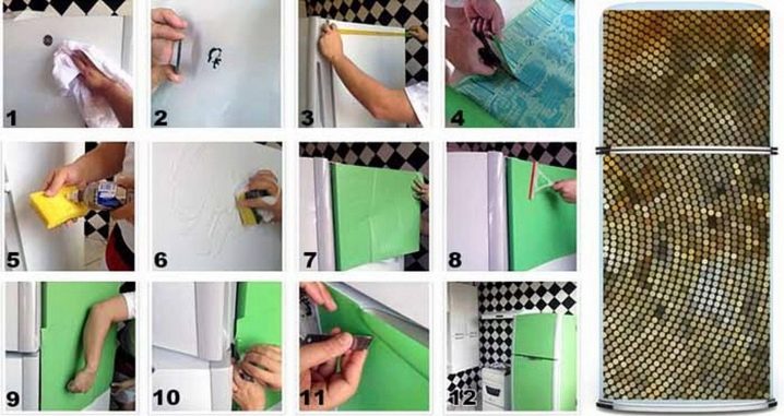 Ако има нужда от повторно декориране на хладилника, тогава старият филм трябва да бъде премахнат. Обикновено виниловите стикери се отстраняват лесно. Ръбът на филма се удължава с нож и се отлепя по диагонал. Останалото лепило бързо се отмива с гореща вода. За по -задълбочено почистване на повърхността мнозина използват и спирт..