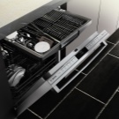 Моделите от 60 см имат достатъчно вътрешно пространство, където височината на горния рафт може да се регулира, а държачите за чинии могат да се сгънат, за да се създаде още повече място за големи тенджери и тави.