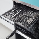 Вградената съдомиялна машина има тринадесет настройки за място и използва десет литра вода. Той има ниска цифра на шума, всички необходими индикатори и няколко допълнителни функции. Съдомиялната машина има шест програми за миене и пет термо режима. И двете кошници се плъзгат свободно, а за прибори за хранене има малка подвижна кошница, където всичко е много удобно за сгъване.